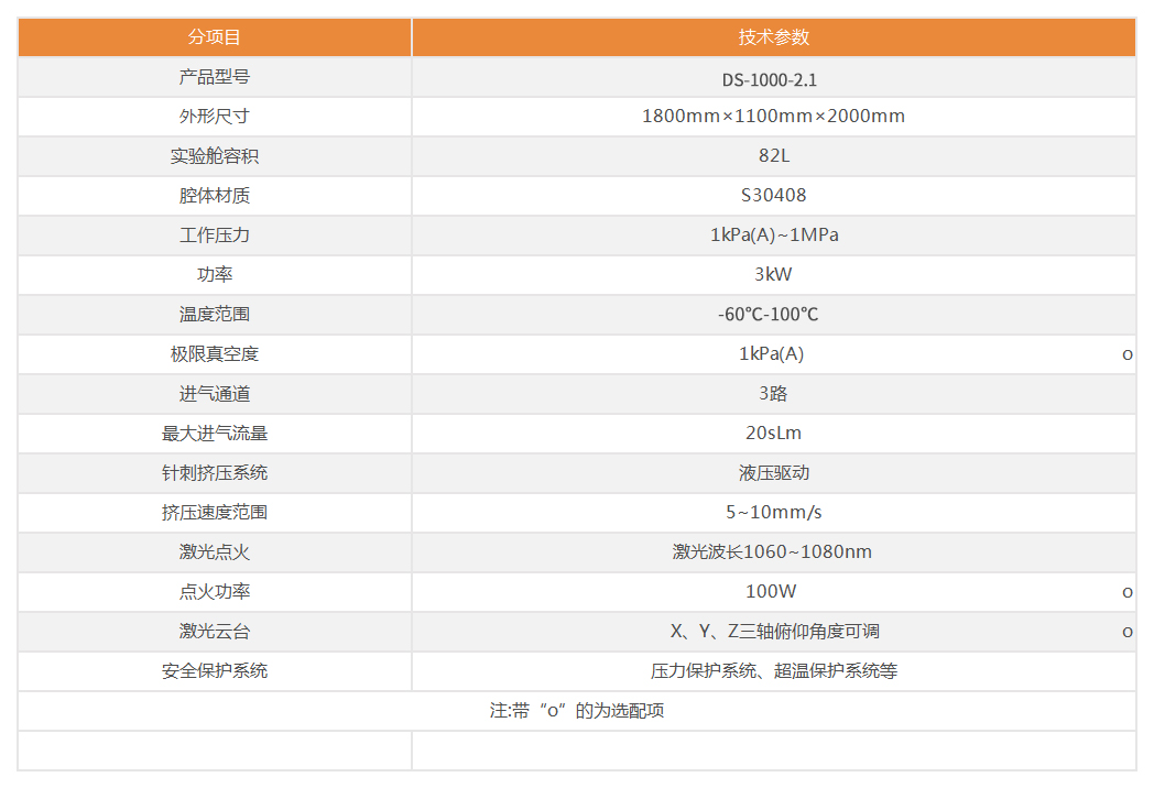 综合实验舱(DS-1000-2.1) 可实现多种环境要素(温度、压力、气氛等)耦合,对电池进行多类测试(针刺、挤压、过充、过放、短路、温度循环、点火、灭火),用于电芯及小型电池模组的综合性能测试。