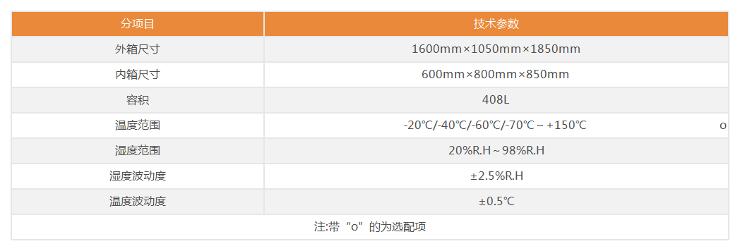 低温环境:最低环境温度:-70℃,降温速率:1℃/min;制冷方式:风冷或水冷;制冷剂:非氟环保R404A/R23;依据标准:GB/T 2423.1-2008、GJB/T 150.4-86、GB/T 2423.22-2012