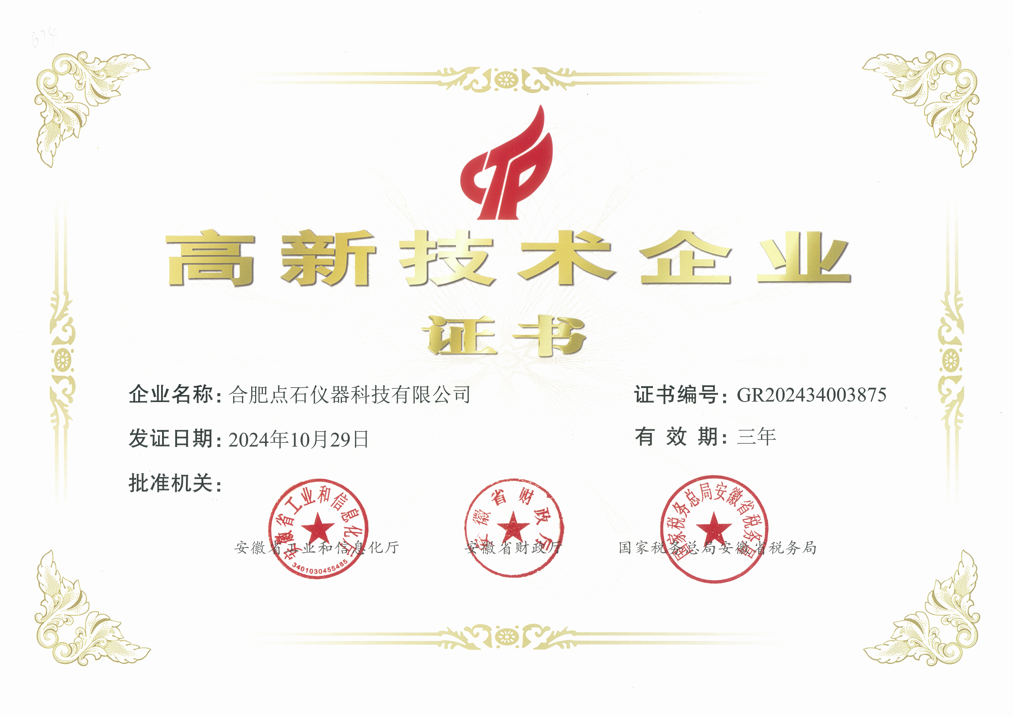 点石仪器再获高企认证,是公司发展历程中的重要里程碑。此次成功通过认证复审不仅是对公司过往努力的肯定,更是开启未来发展新篇的钥匙。未来,点石仪器将继续专注科研仪器领域,大力推动前沿技术的产业化应用,让更多先进技术落地,服务科研与生产实践。同时,我们将积极开拓新市场,拓展业务领域,为科研工作者提供更全面、更优质的解决方案,持续攀登发展新高峰!