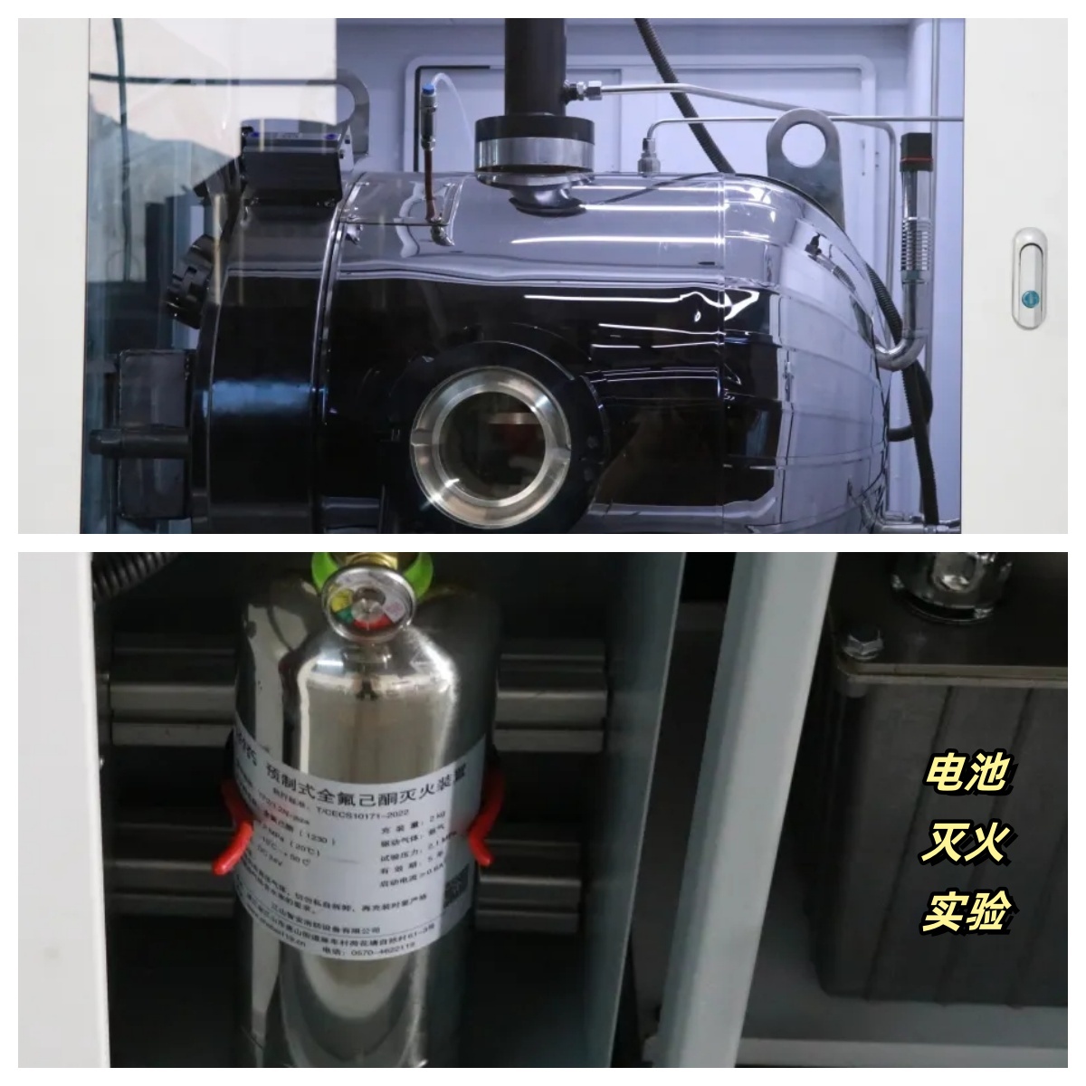 中型综合实验舱动态演示:(1)针刺挤压等物理冲击导致电池热失控;(2)激光诱导导致电池热失控;(3)局部高温导致电池热失控。