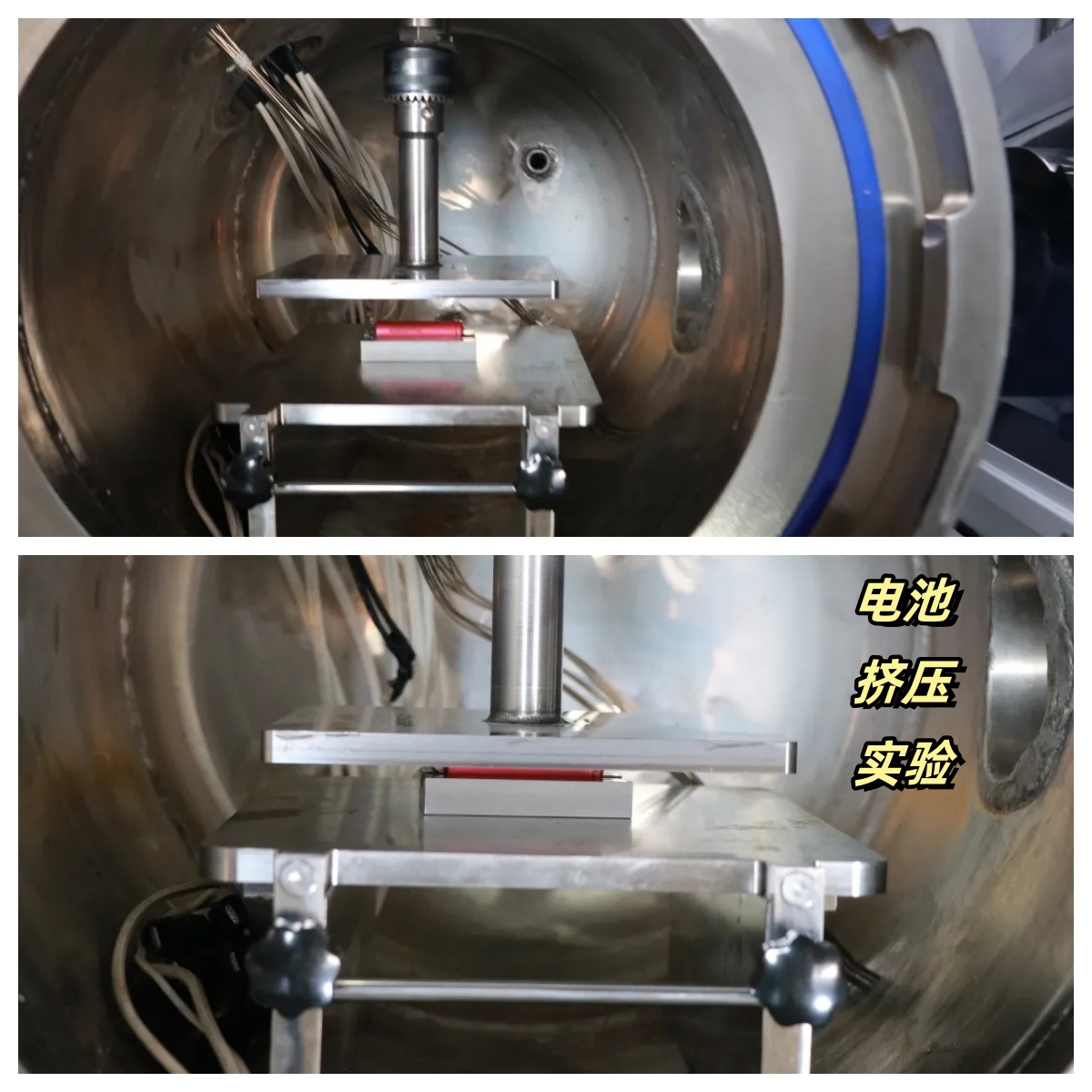 2、电池挤压实验:不同环境条件下(高气压/低气压、环境高温/环境低温/局部高温、富氧/贫氧/保护气体)的电池挤压实验。