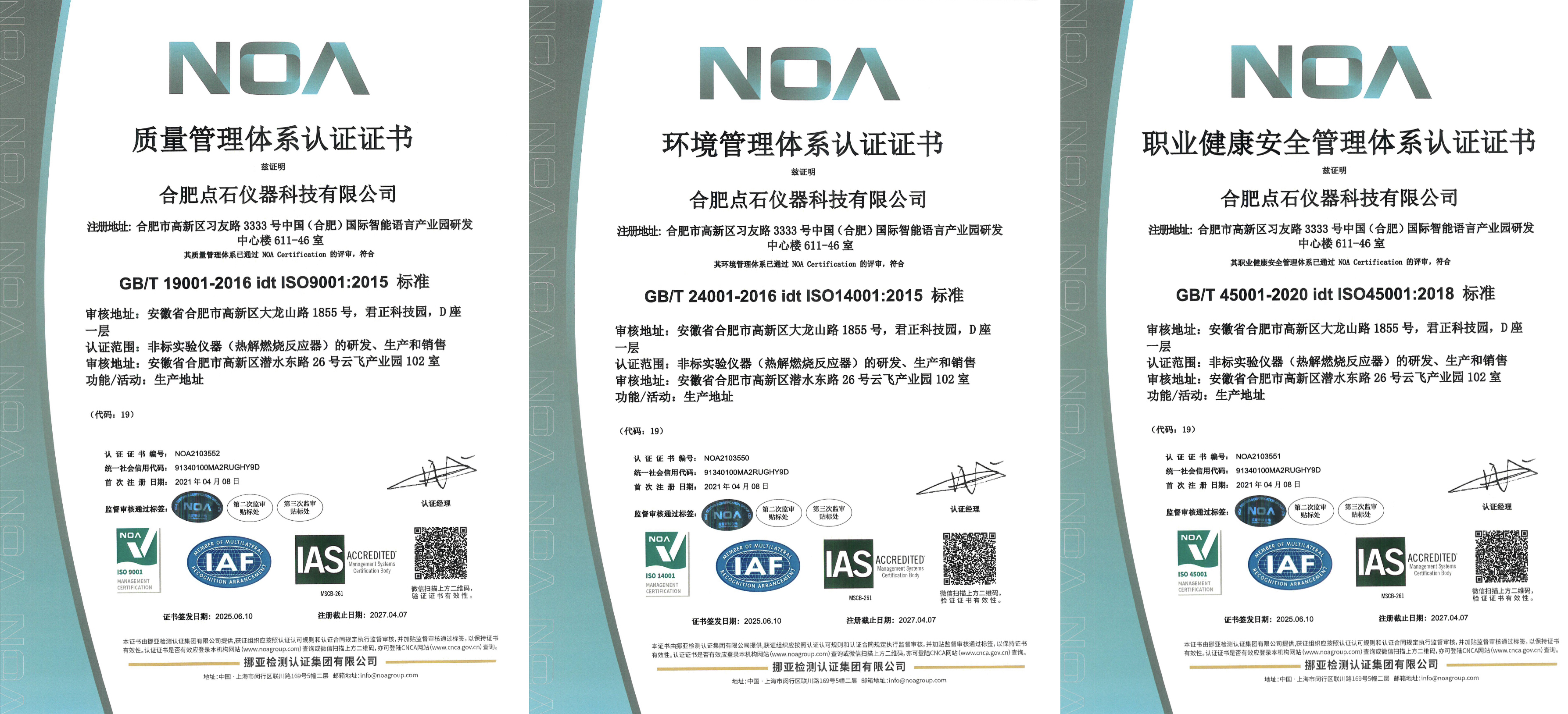 近日,点石仪器再次顺利通过ISO“三体系”——质量管理体系(ISO9001)、环境管理体系(ISO14001)、职业健康安全管理体系(ISO45001)认证年审。